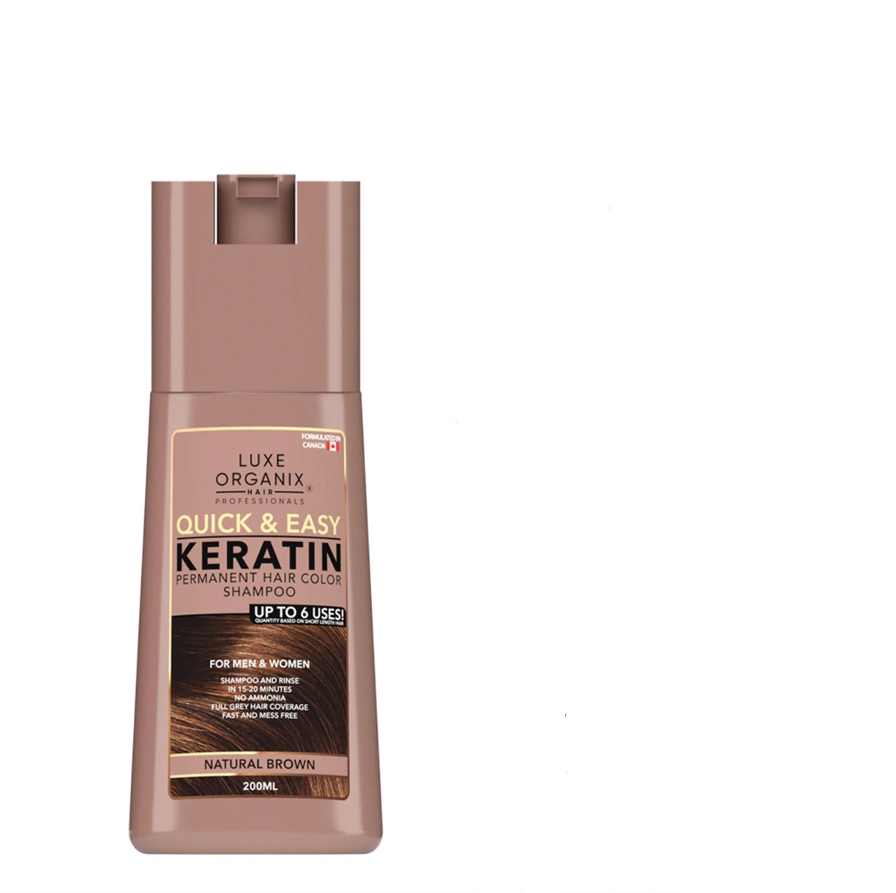 Luxe Organix Quick and Easy Permanent Hair Color Shampoo is a fast and mess-free hair color that gives natural-looking vibrant hair. Free from ammonia and peroxide. It is formulated with Keratin and Argan Oil to help keep hair soft and manageable.