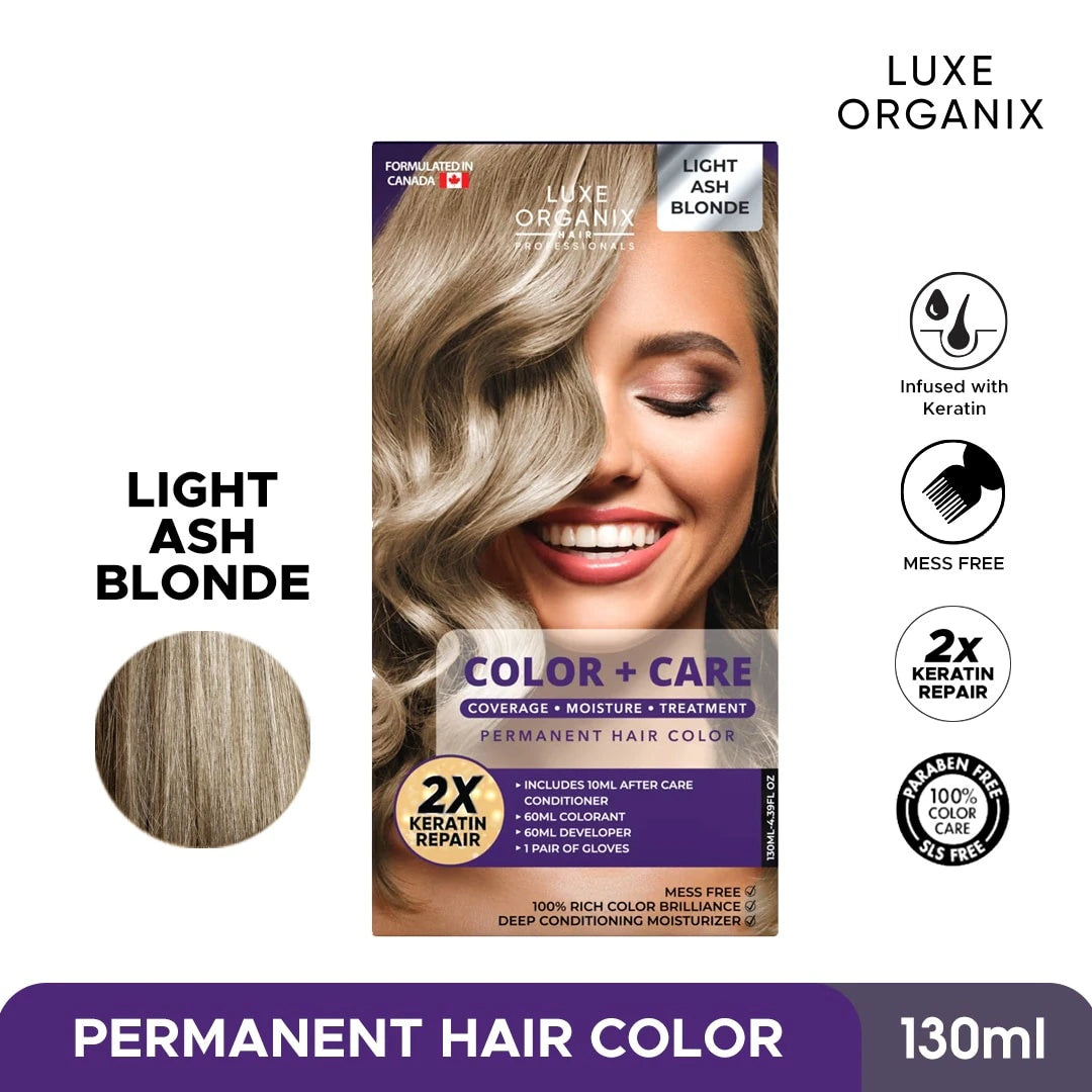Permanent Hair Color Light Ash Blonde with Cream Developer 60ml